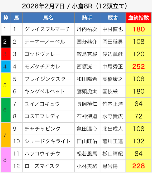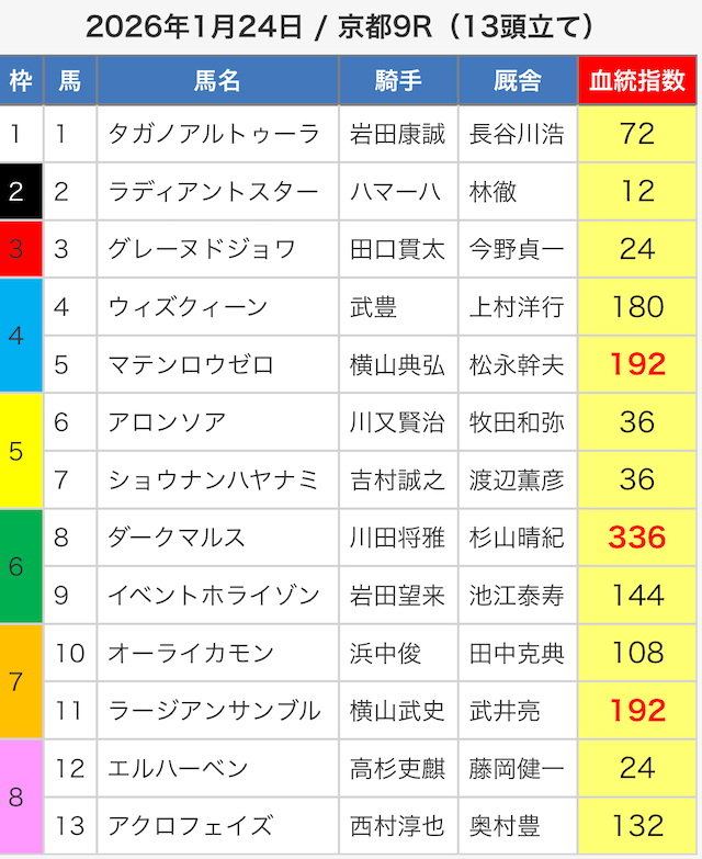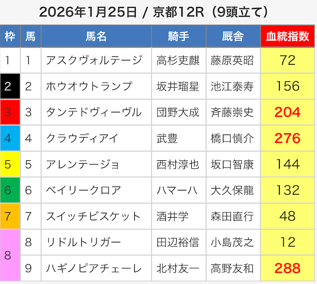 初見は血統指数ってなんだよって思ってたけど、これが案外アテになる。