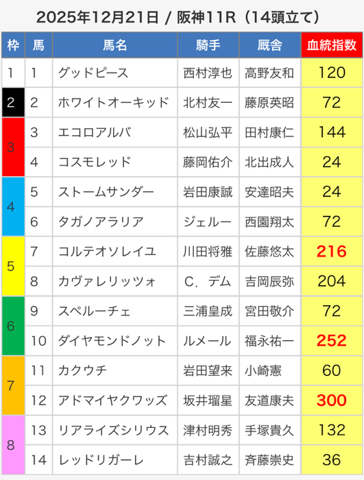 そのため、当日の馬場状態・気候の変化・馬のコンディションは想定されていません。