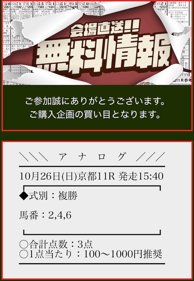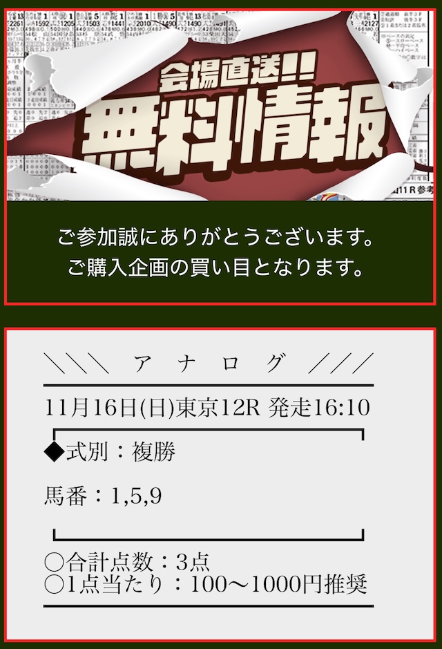 競馬ビビットがあなたの代わりにアナログの無料予想・有料予想に参加。