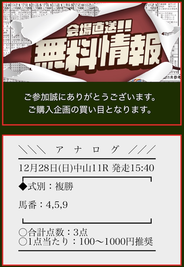アナログから公開された買い目がこちら。
