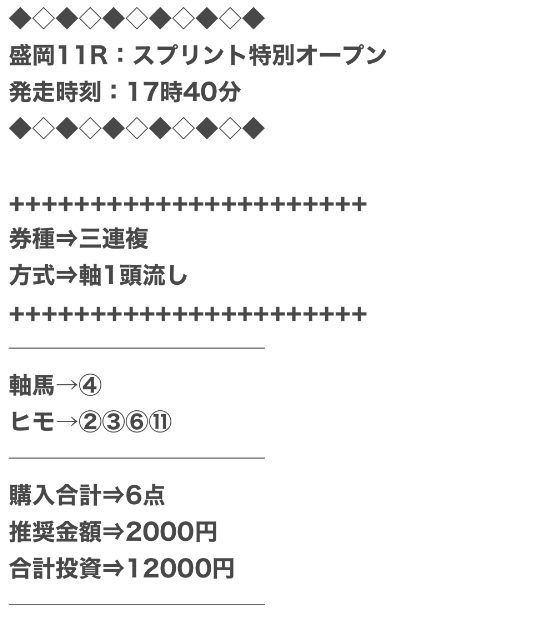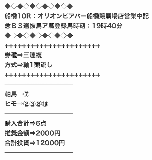 7,000円 | 3連単 | 12,000円/1鞍 |