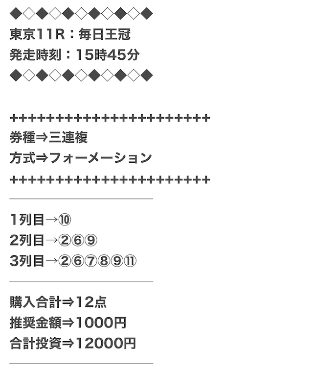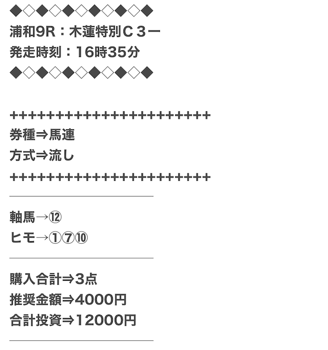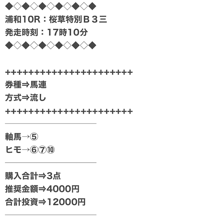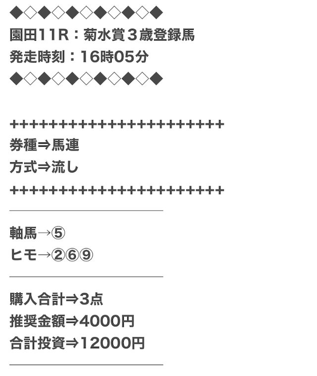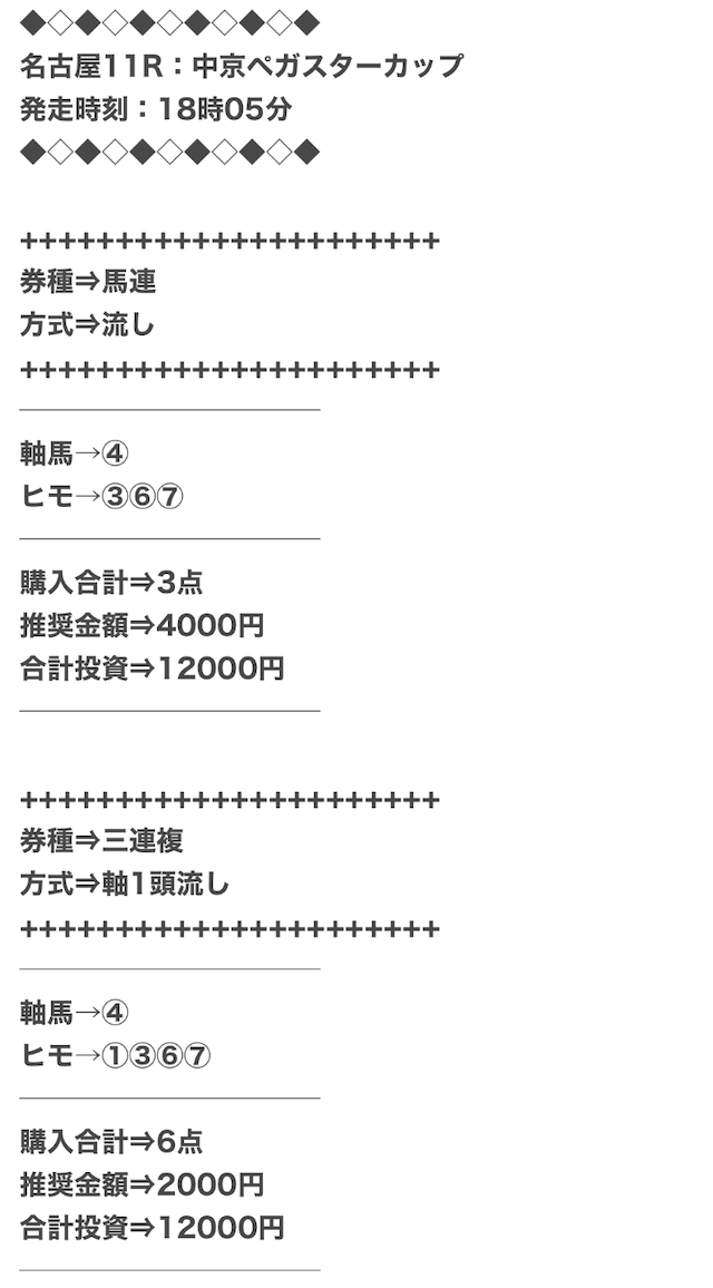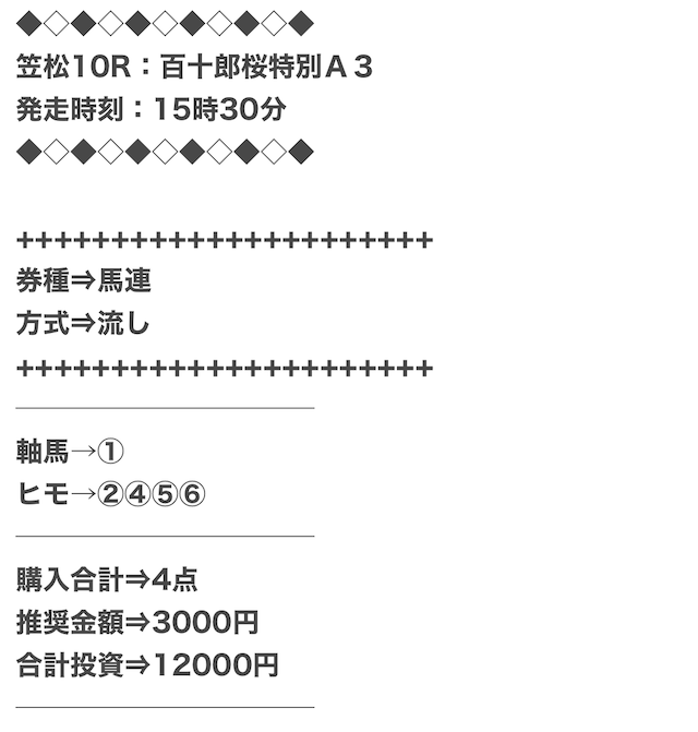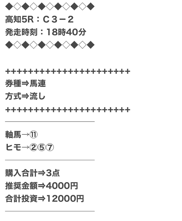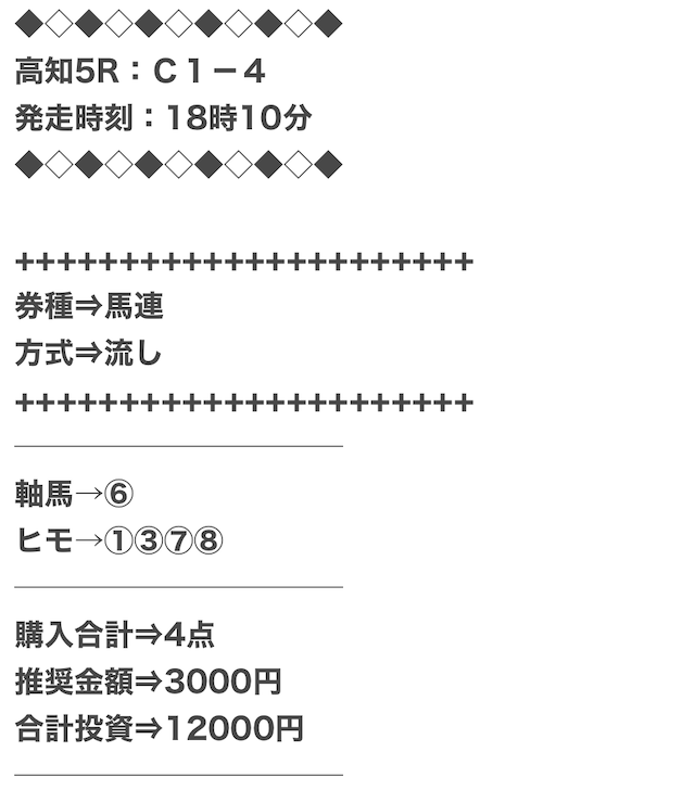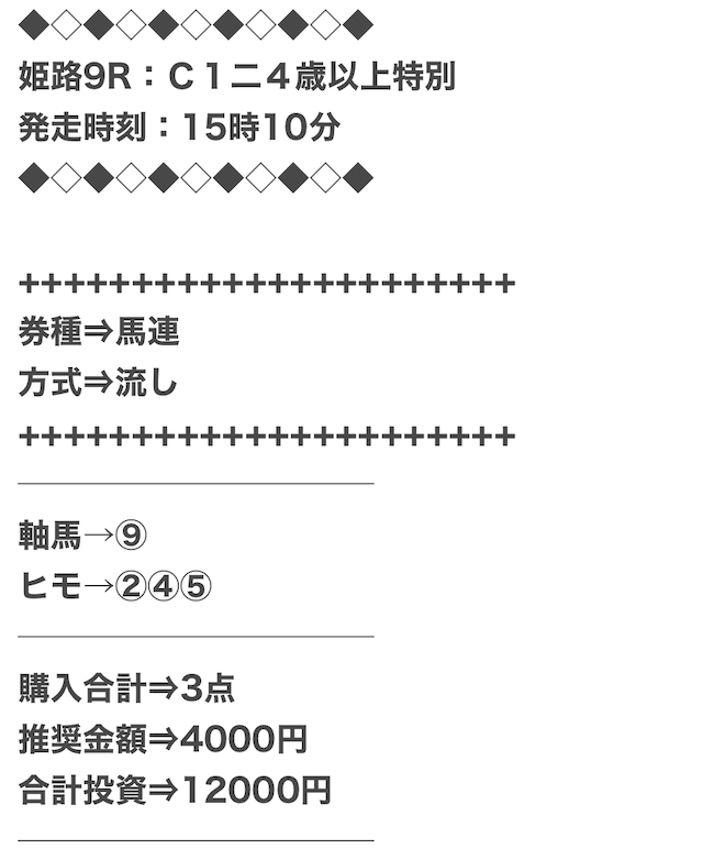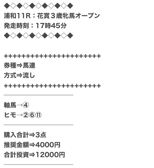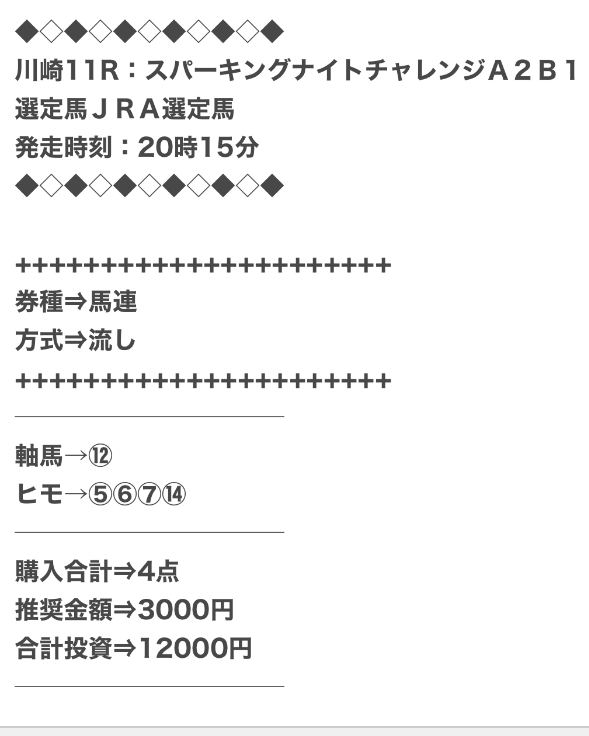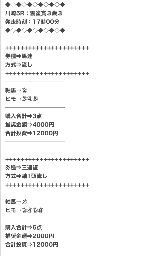 予想が当たることは間違いないんだけど、レース選びも秀逸。ちゃんと高配当が狙えるレースを選んでる。