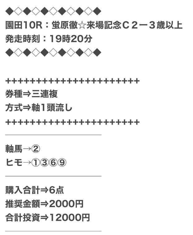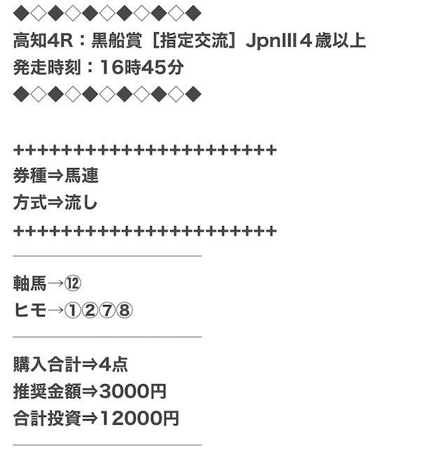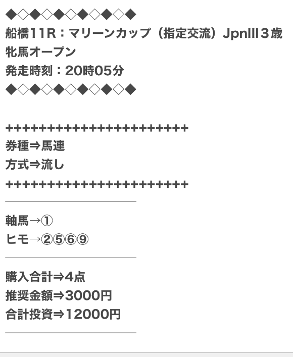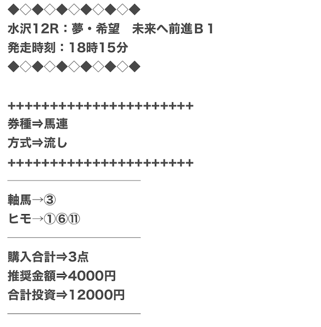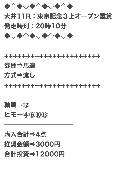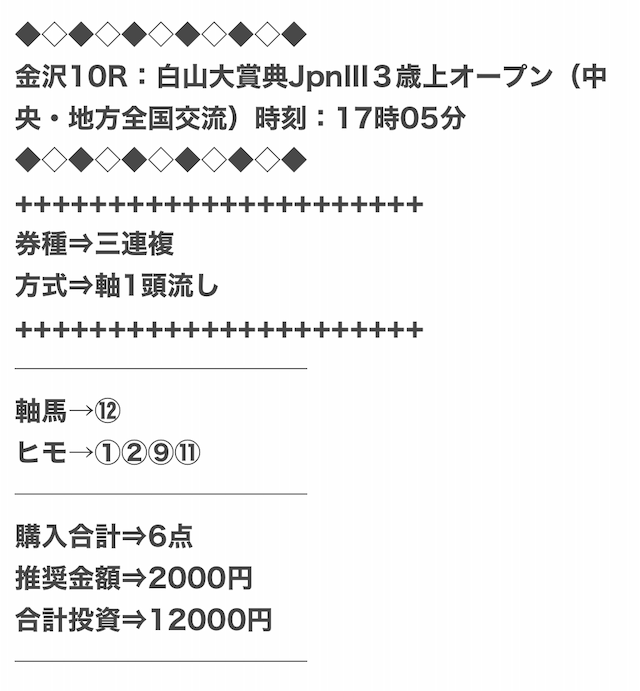 82,000円 | 3連複 | 12,000円/1鞍 |