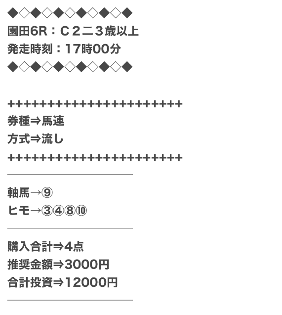 買い目点数も少ないし、回収率重視なのが伝わる。