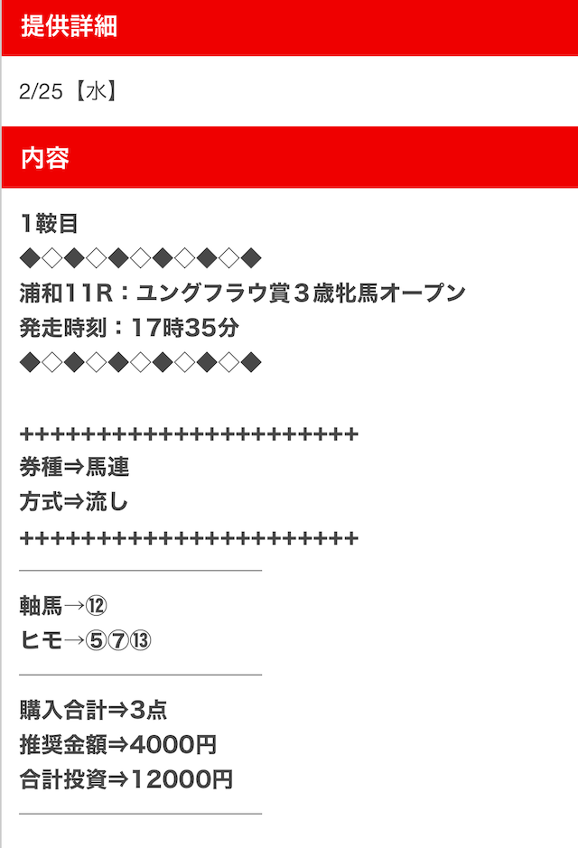続いて、穴馬ch25が販売している有料情報を検証していきます。