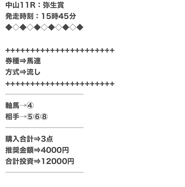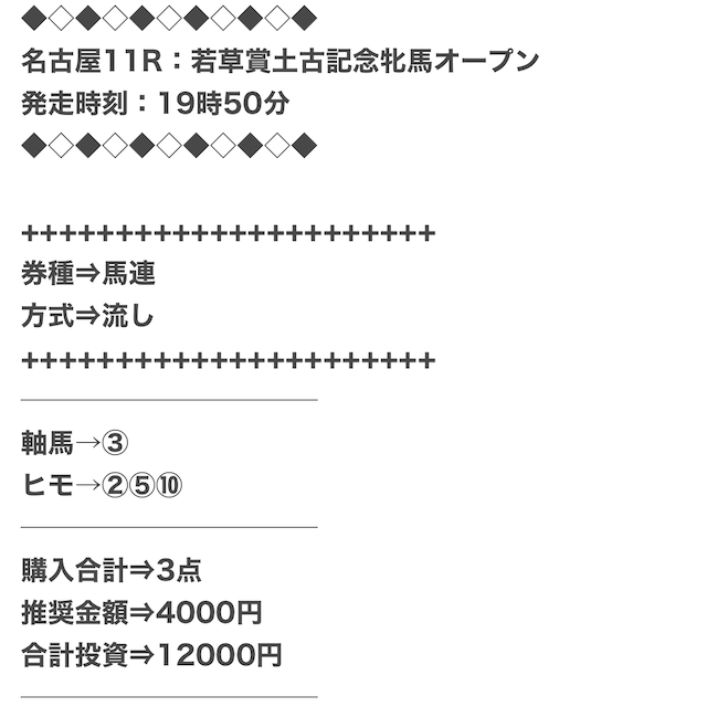 | 12,000円 | 平均馬券代 | 4,000円 |