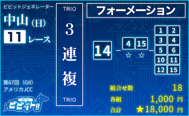 昨年のアメリカジョッキークラブカップでも予想を的中させたビビットAIの予想をぜひ参考にしてみてください!
