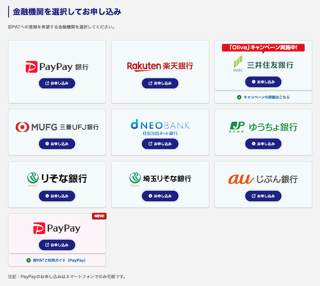 ちなみに、現時点で即PATに対応している銀行がこちら。
