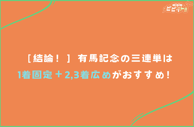 冒頭でもお伝えしている通り、有馬記念を攻略するには[1着固定+2,3着広め]で勝負するのが吉。