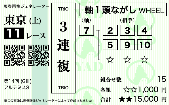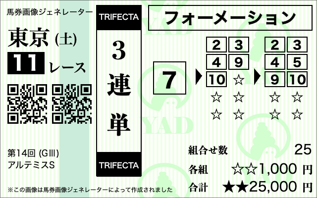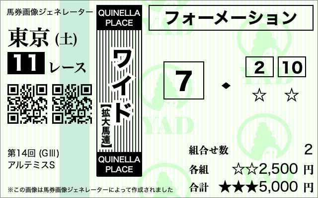 まずはじめに本記事の結論である、競馬ビビットによるアルテミスステークス2025の最終的な予想をご紹介します。