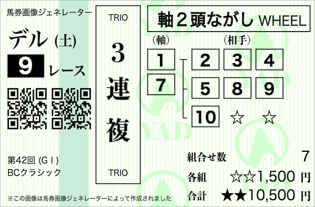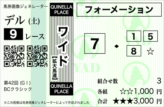 本命に選んだ2頭を軸にした買い目で勝負します。