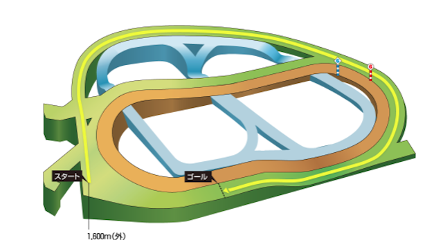 直線が短いので、4コーナーを回った時点で前にいる馬が粘り込みやすく、脚質は基本的に前めが有利。