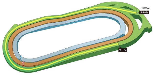 3コーナーまで約750mと長く、序盤は無理に競り合わず隊列が整いやすいコースです。