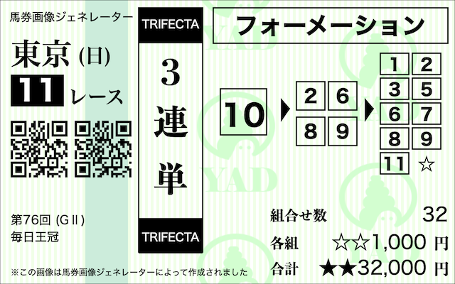 ⑩サトノシャイニングを軸とした3連複フォーメーション計19点の買い目。