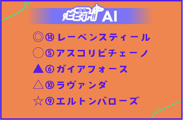 ビビットAIが最も馬券内に入る確率が高いとみているのは⑭レーベンスティール!