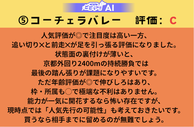 ビビットAIによる出走馬全頭の最終評価をご紹介します。