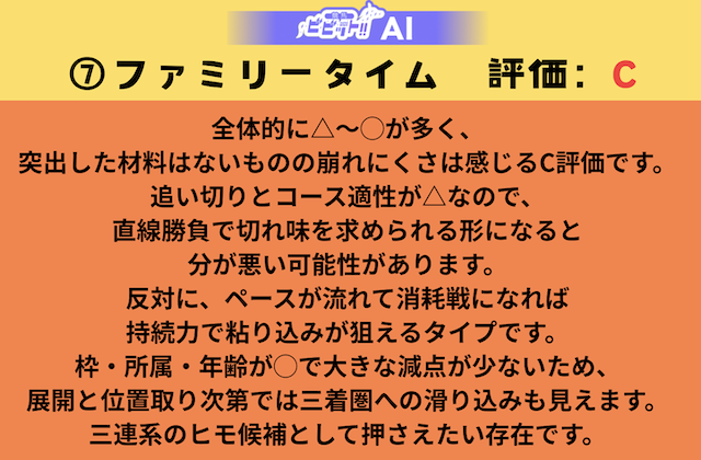 | 7 | ファミリータイム | C | 【🤖】 | △ | △ | △ | ◯ | ◯ | ◯ | △ |