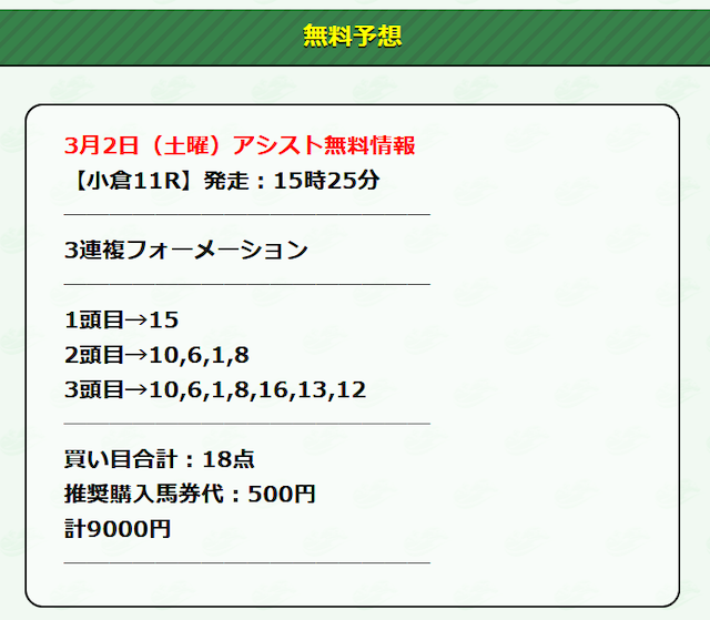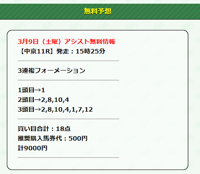 アシストの無料予想に参加!馬券を買って検証してみた!