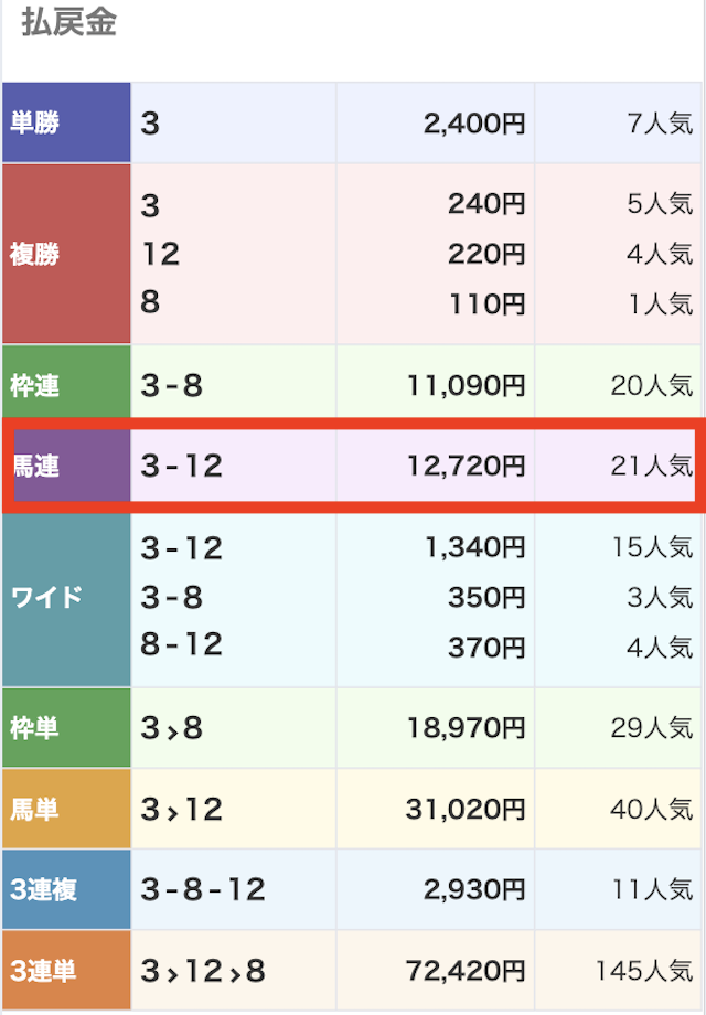 | 予想の券種 | 馬連・ワイド |