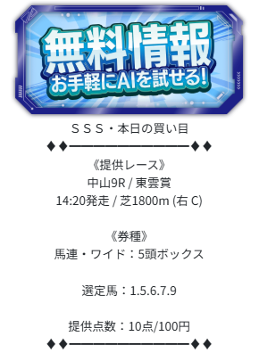 | 推奨馬券代 | 1点100円〜 |