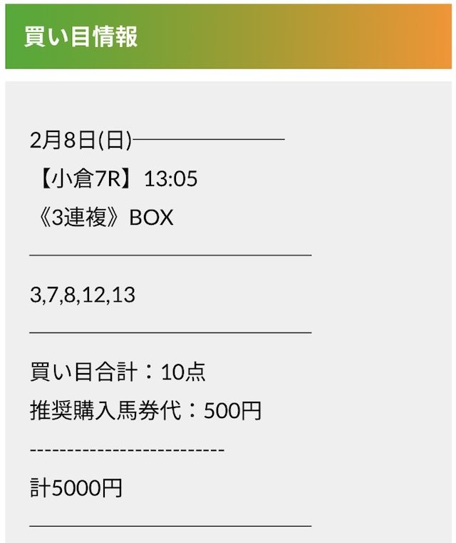 たまに高配当も当ててくれるから継続して参加していくのが大事なサイトですかね、あと地方競馬の予想も出してくれたらゆうことなしですけどw