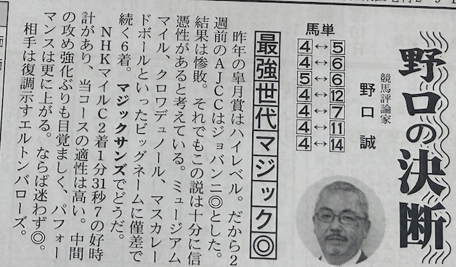 | 野口誠のここ一番 | 野口誠によるその日の 注目馬を紹介するコラム |