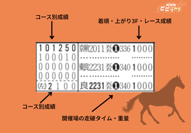競馬ブックの馬柱にある条件別成績は、出走レースと近い条件での過去成績を整理したデータです。