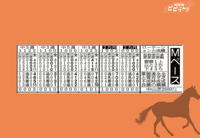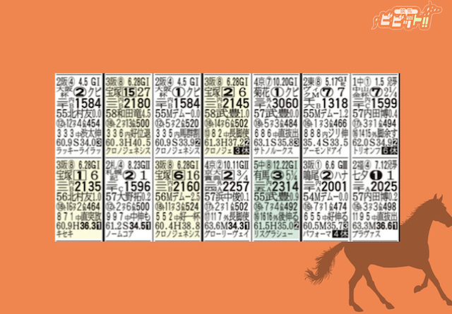 馬柱からは、大きく分けて7つの項目が確認できるようになっています。