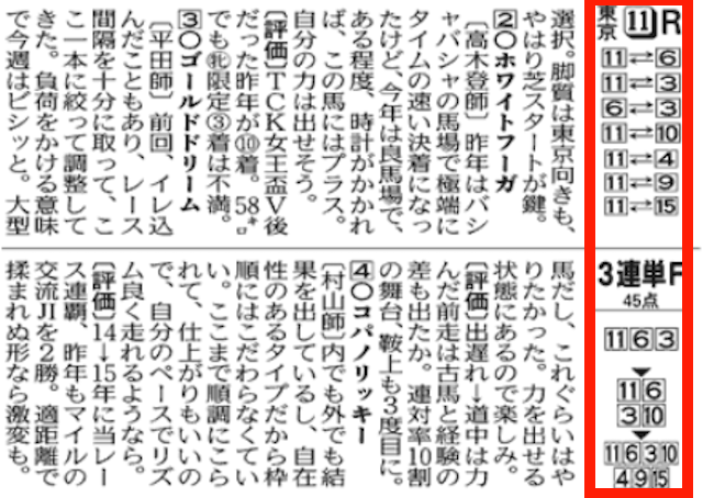 それぞれ記載されているレースが違うので、どの新聞にどのレースが載っているか把握しておきましょう。