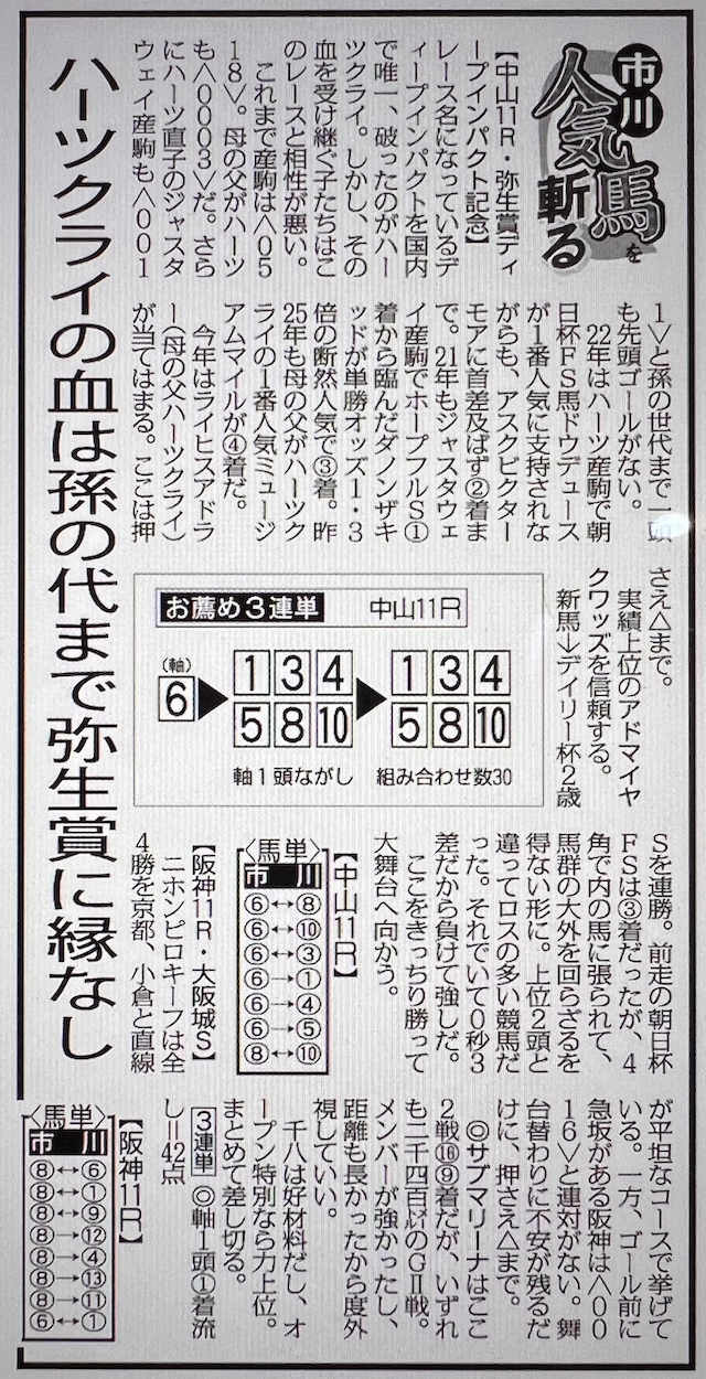 他の専門紙・スポーツ紙と比較しても人気サイドを中心に組み立てられており、的中率そのものは確保された内容でした。