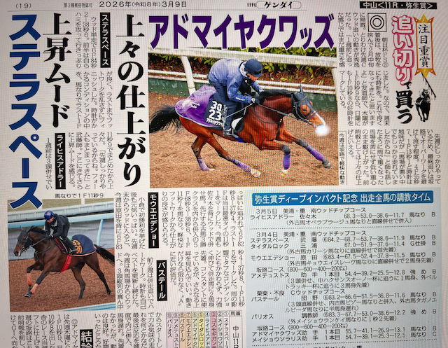 日刊ゲンダイでは、その調教内容をもとに状態の良い馬を重視した予想が組み立てられています。