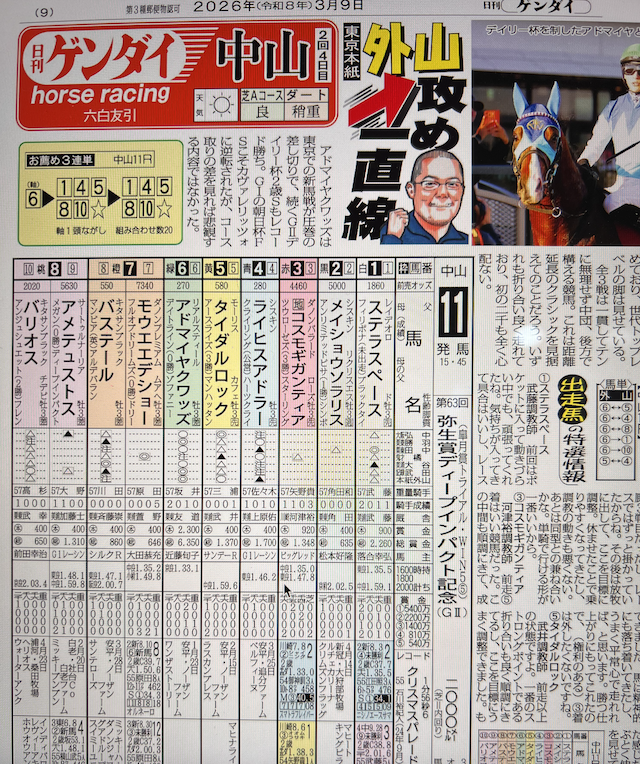 日刊ゲンダイは、スポーツ紙特有のカラーの多さを活かした、見やすい馬柱を公開しています。