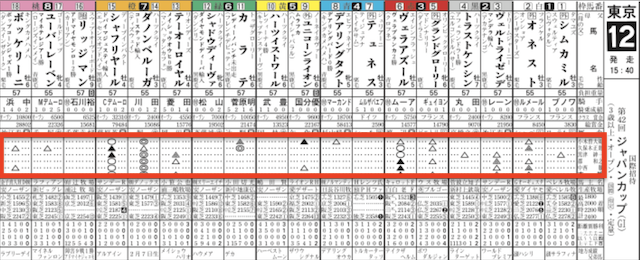 日刊競馬では所属している各予想家の予想印と本誌が出した予想印を確認する事が可能。