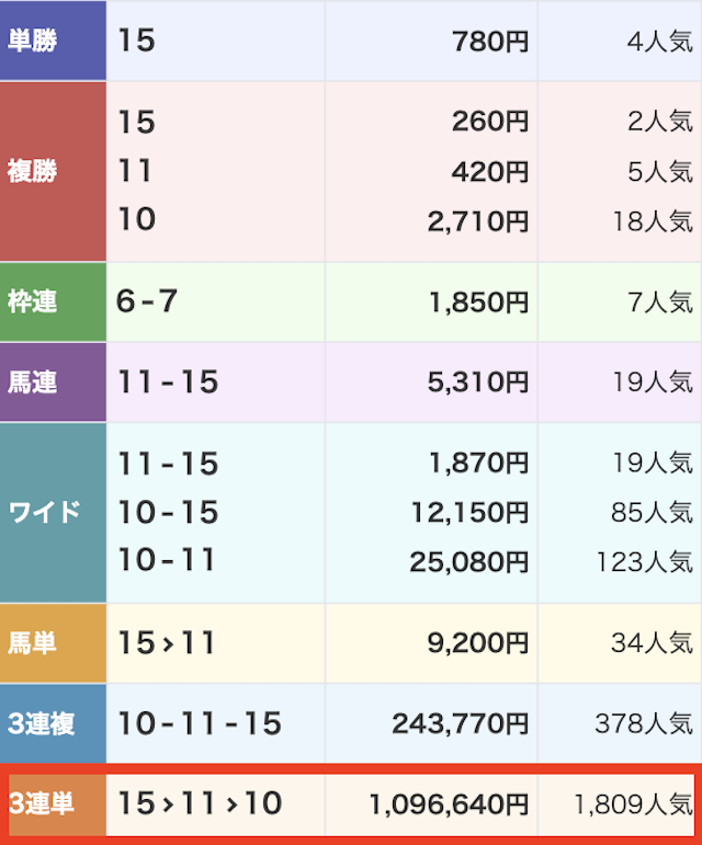 レース結果を確認しても、万馬券なんてのはザラにあり、中には配当が100万円を超えるケースも。