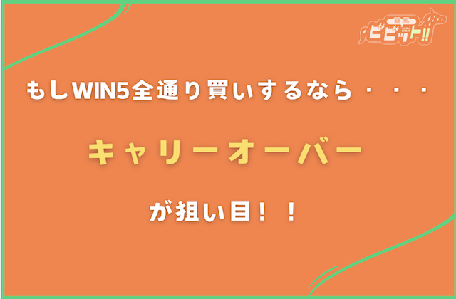 どちらの場合でもキャリーオーバー後のWIN5は払戻金が上乗せされるため、単純にいつも以上に全通り買いでも稼げる可能性が高くなります。
