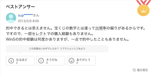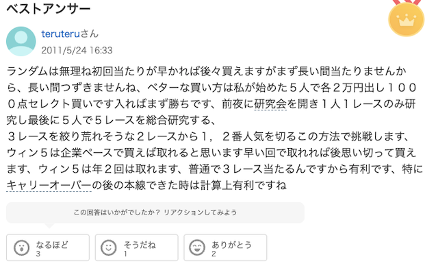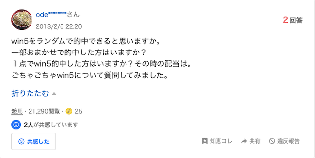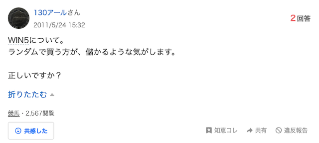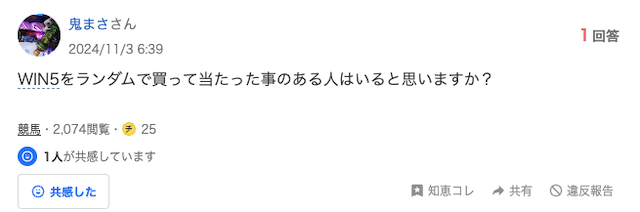 Yahoo!知恵袋では「WIN5をランダムで当てた人はいますか?」という声が多数上がっていました。
