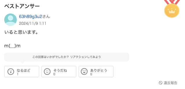 的中報告が確認できたのは、Yahoo!知恵袋のみ。