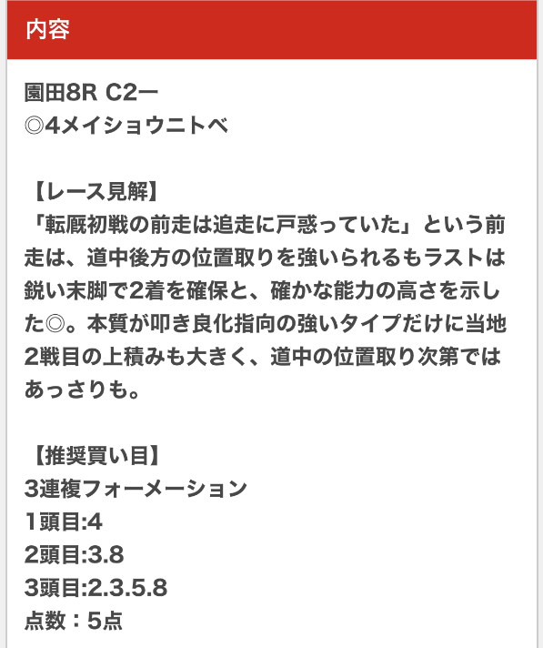 買い目と一緒に公開される見解をよく読んで分析した結果、自分の予想がほんの少し当たるようになりました。