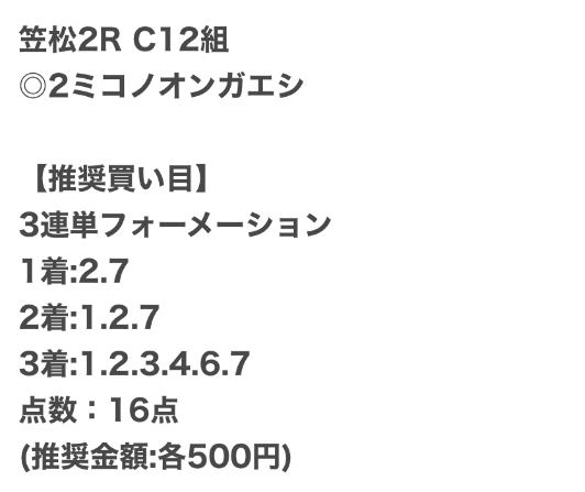 無料予想はだいぶ堅実な狙い方でしたが、有料予想は全く別物。