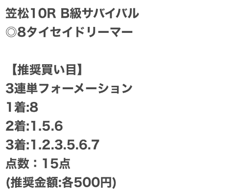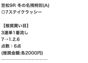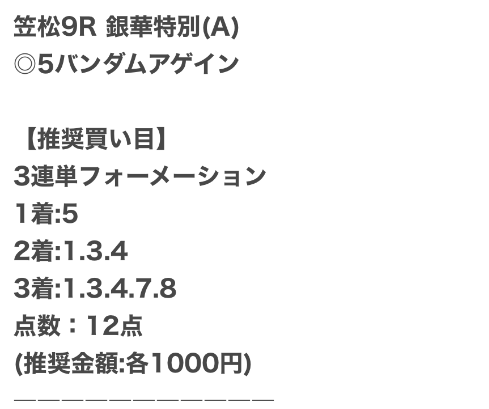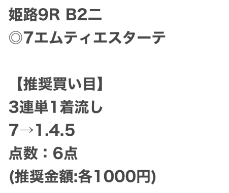 | 推奨馬券代 | 記載なし |