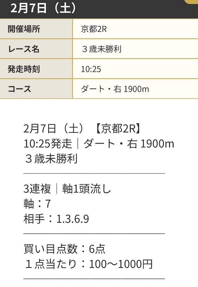 | 対象レース | 京都7R |