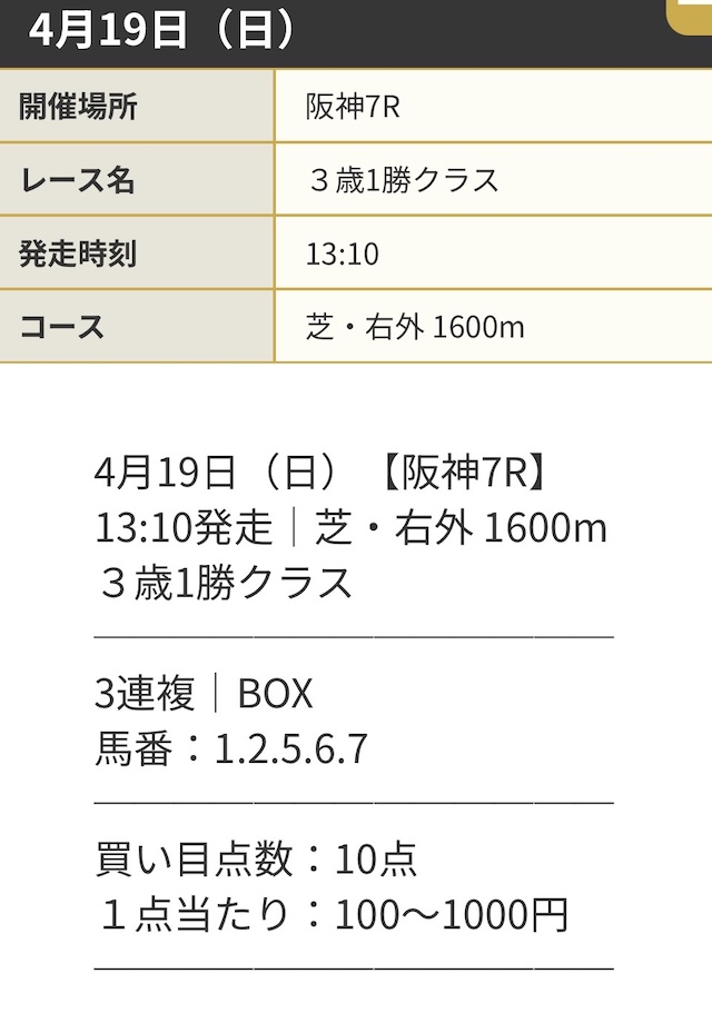 実際に公開された買い目がこちら。