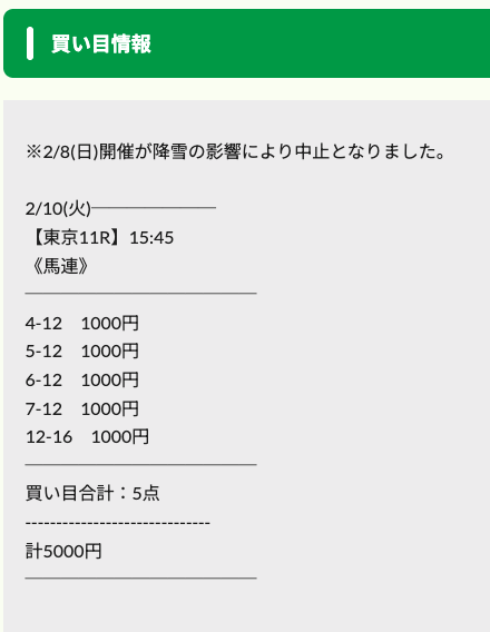 1つ言うなら、地方競馬の買い目も公開して欲しい