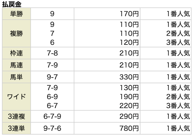 | 馬券代1点 | 1,000円 |