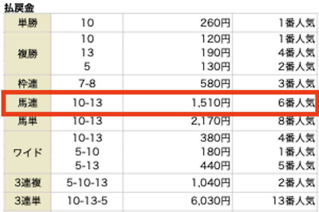 推奨投資金額が1点7,500円とかなり高額なため、より的中に期待できる馬連で検証を進めていきます。