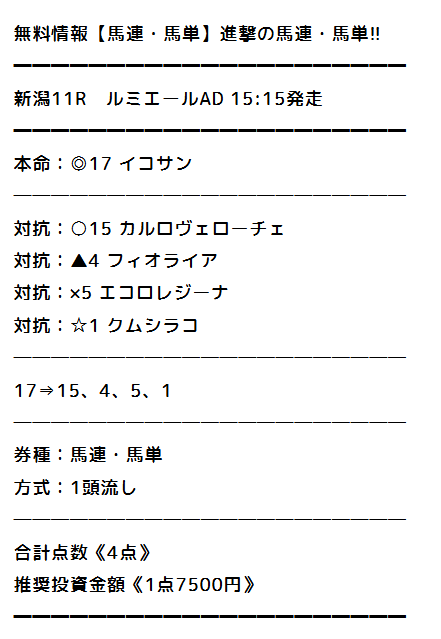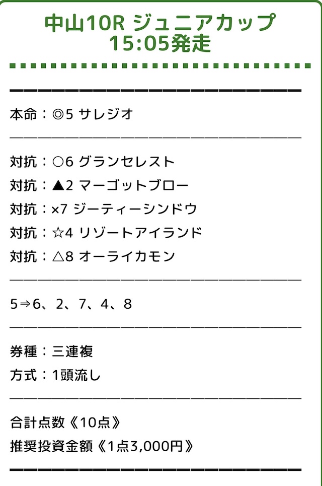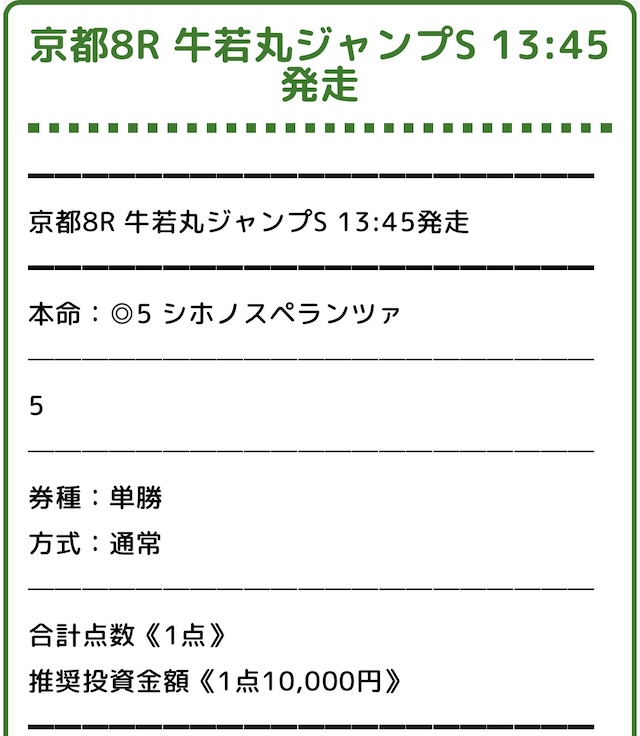| 馬券代1点 | 7,500円 |