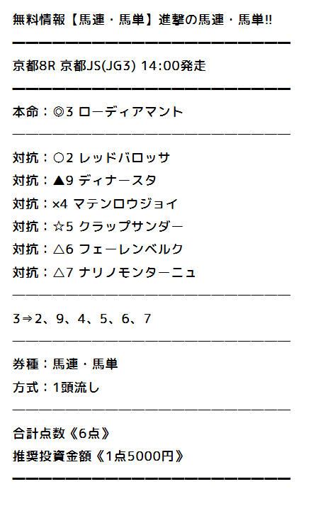 2025年10月18日京都9Rの予想に参加!