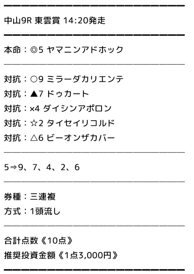 日曜の中山メインでがっつり。ハイエンド情報です。