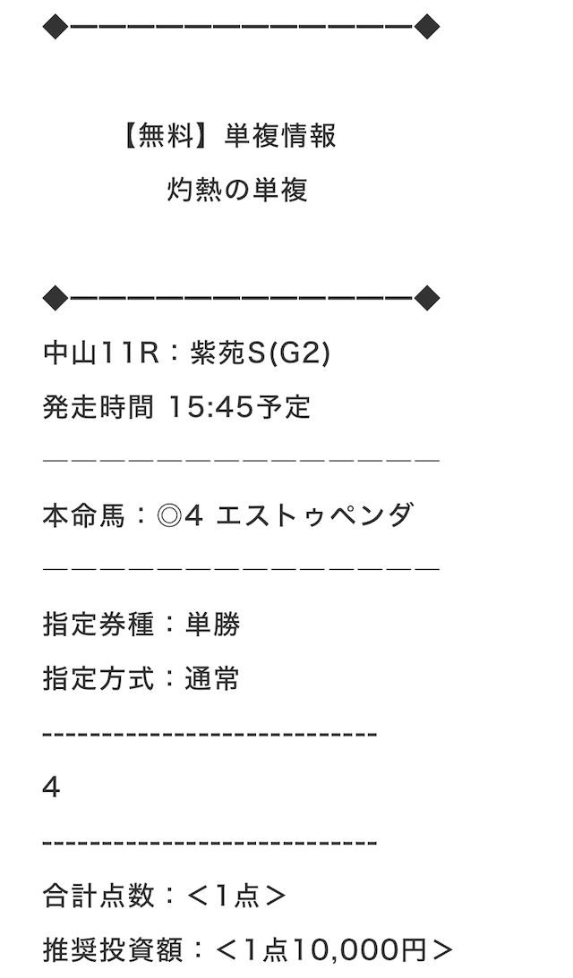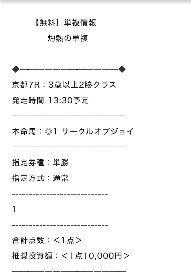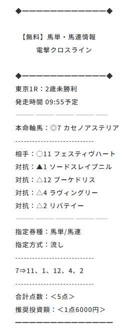 無料予想がよく当たるから、有料予想はどうなのかな・・・と思いキャンペーン情報に参加したものです。
