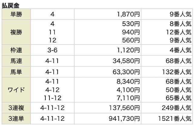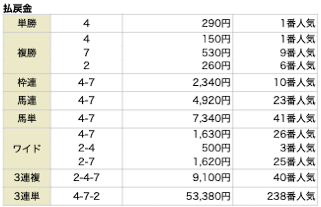 | 馬券代1点 | 400円 |